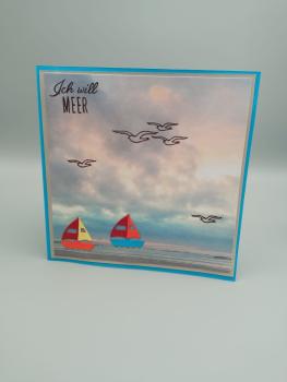 Handgefertigte Grußkarte: "Ich will MEER" – Segelboot auf wilder See