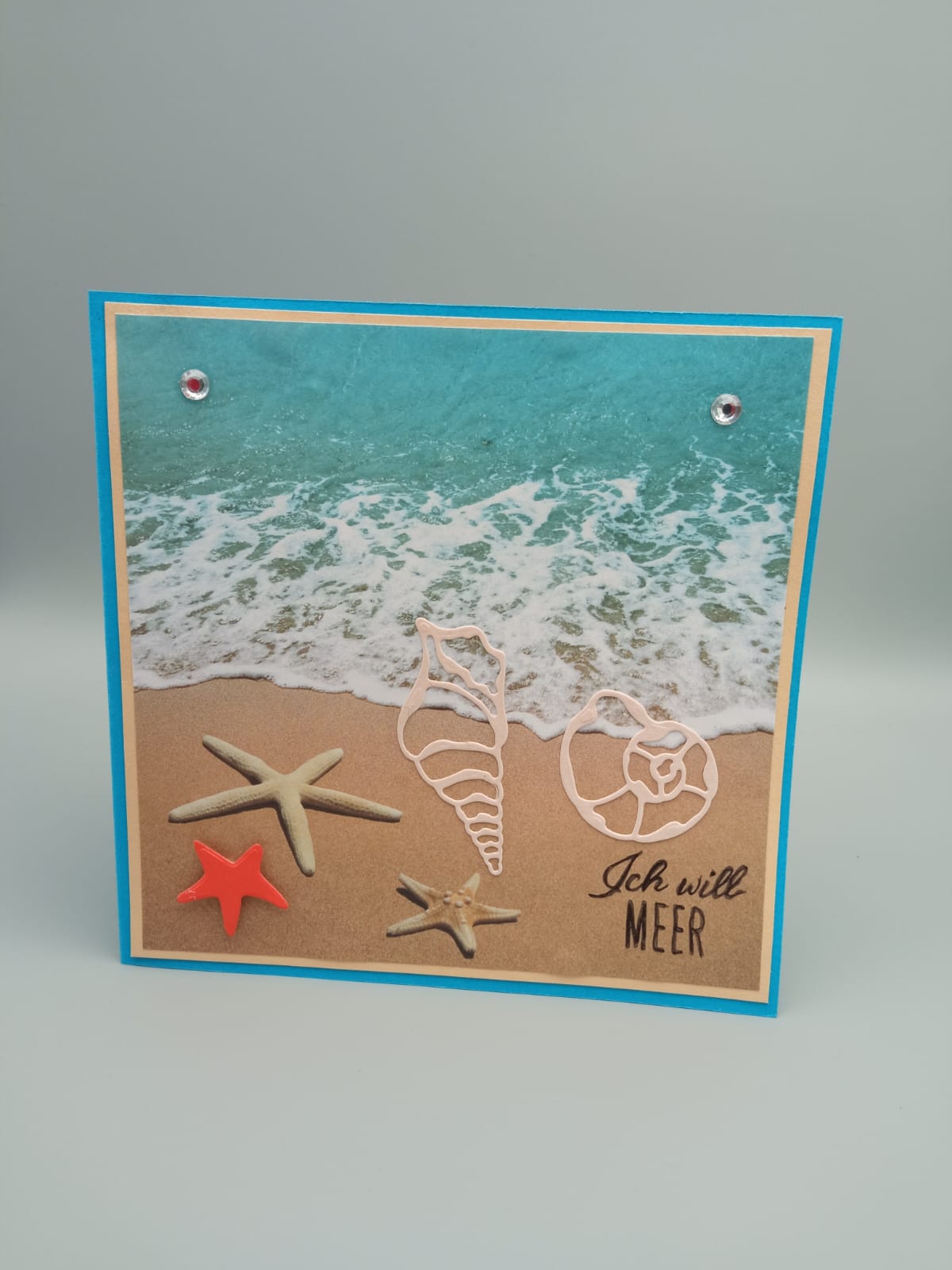 Diese charmante, handgefertigte Grußkarte fängt die pure Sehnsucht nach Meer und Strand ein. Sie ist das perfekte Geschenk für alle, die vom nächsten Urlaub träumen, oder um einfach nur herzliche Sommergrüße zu versenden.
